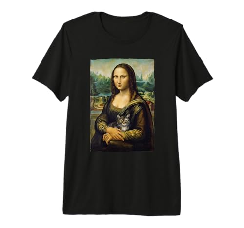 Mona Lisa Holding Cat Portrait Art Painting Kitty Cat Mom Premium T-Shirt