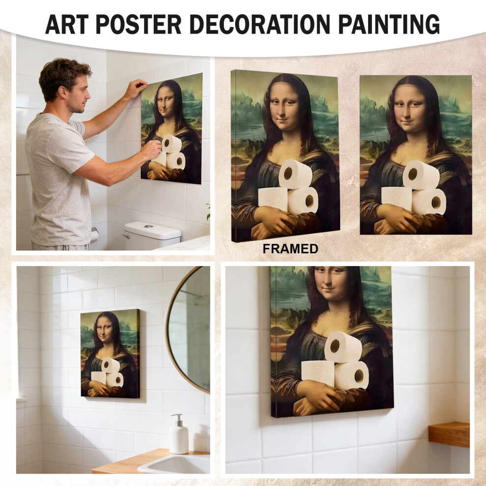 Mona Lisa Bathroom Canvas Wall Art, Funny Toilet Poster, Humor Bath Decor (Framed, 9.8x8 in) â Compatible with Home & Office