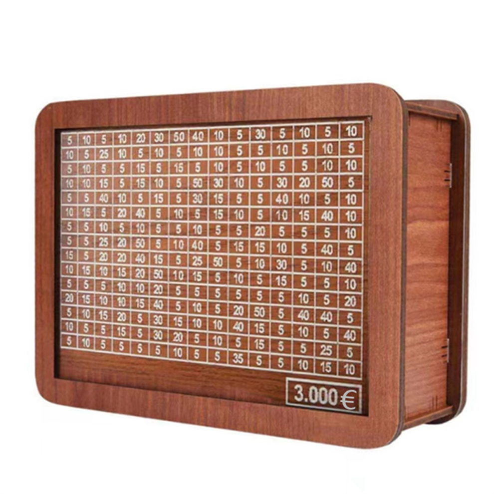 Home Counter Bank Wooden Piggy Bank for Adult Kids, Money Box with Counter, Money Saving Tin, Money Box with Counting Target 3000 Euros
