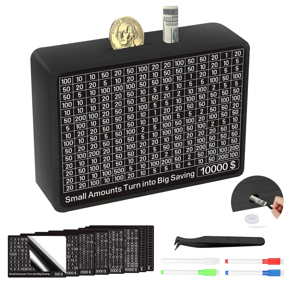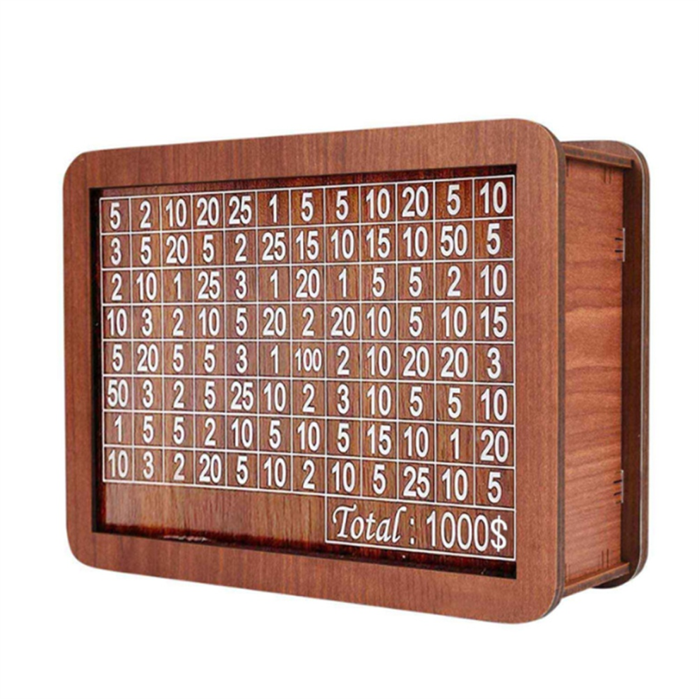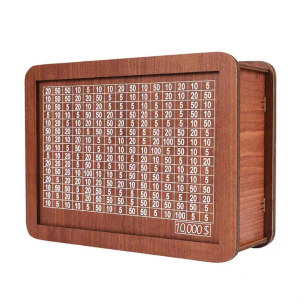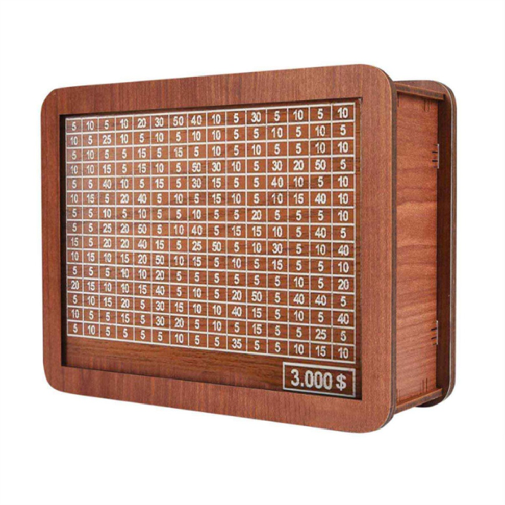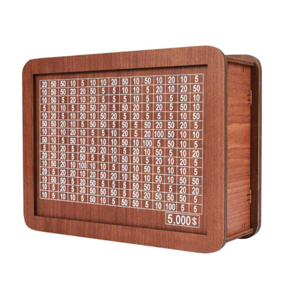 Wooden Money Saving Box Piggy Bank for Adults Kids Cash Savings Challenge Box Money Saving Box with 10000 Dollars Target No Install Required Conv