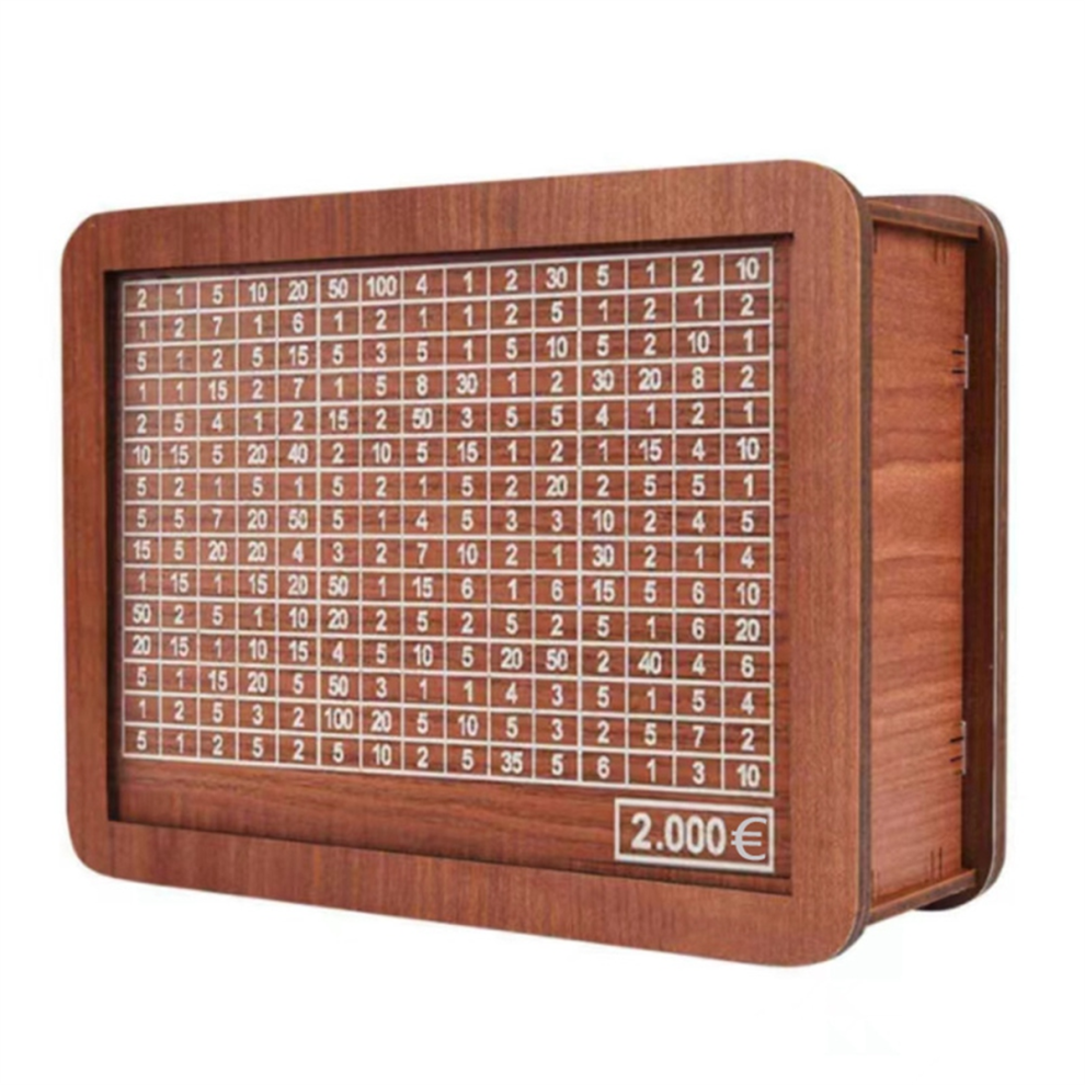 Home Counter Bank Wooden Piggy Bank for Adult Kids, Money Box with Counter, Money Saving Tin, Money Box with Counting Target 2000 Euros