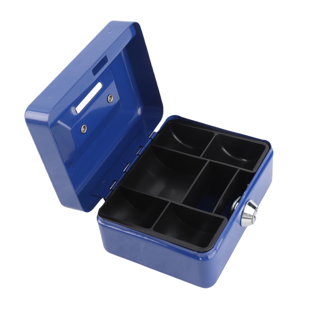 Cash Box with Money Tray Metal Storage Safe Lock Box Mini Locking Cash Box Money Saving Organizer for Household Car Blue