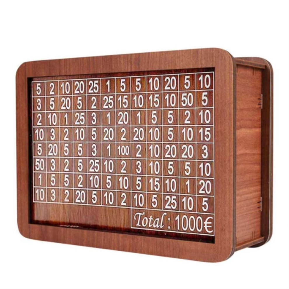 Home Counter Bank Wooden Piggy Bank for Adult Kids, Money Box with Counter, Money Saving Tin, Money Box with Counting Target 1000 Euros