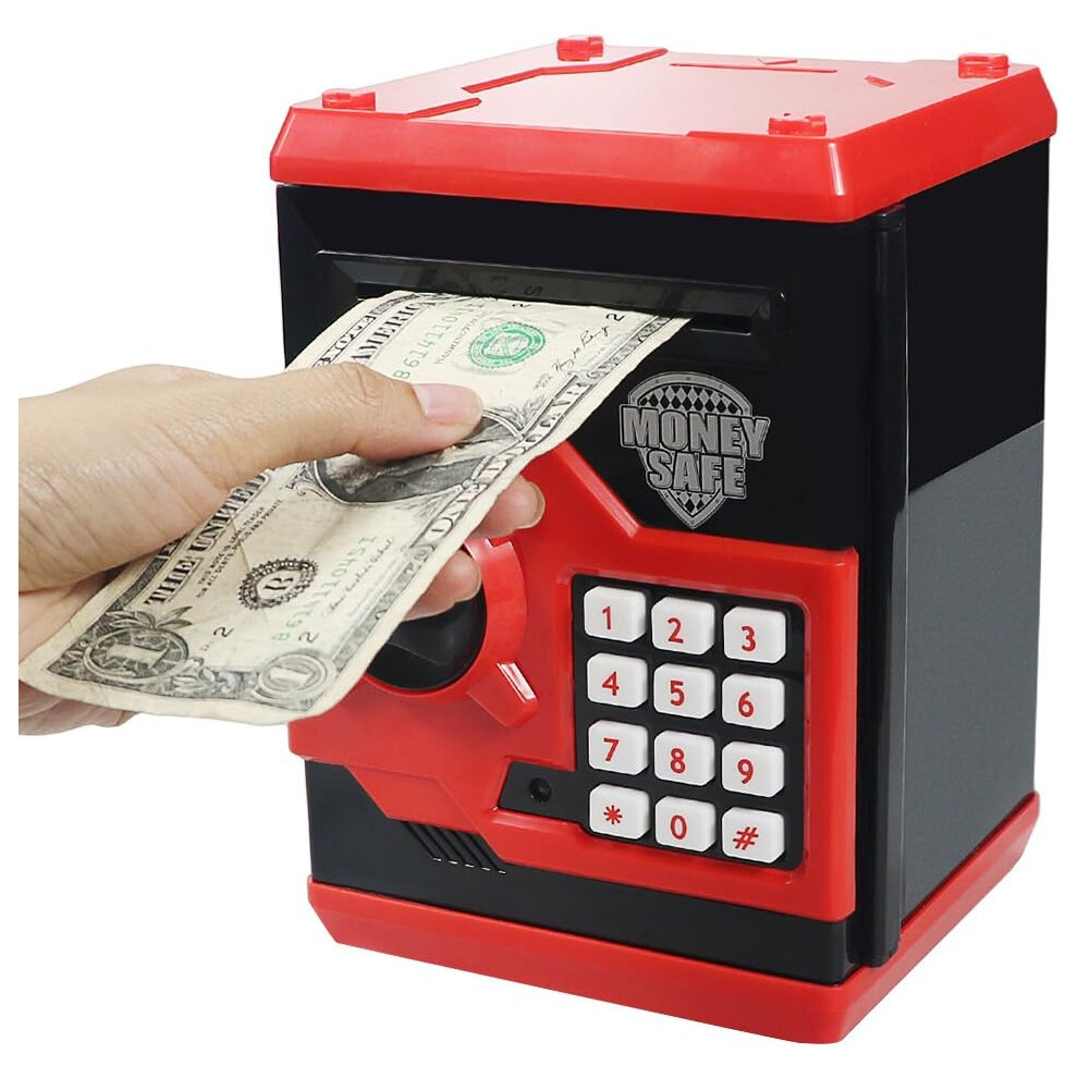 Electronic Piggy Bank With Automatic Money Scroll, Mini Atm Safe Box, Money Saving Toy For Kids, Birthday Xmas Gift For Boys And Girls (red)