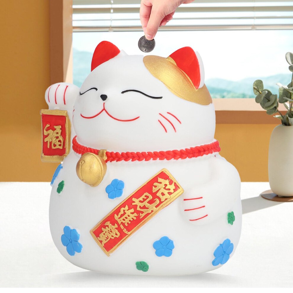 Lucky Cat Coin Bank 6.9in Japanese Maneki Neko Money Box for Kids Saving Habits and Home Decor