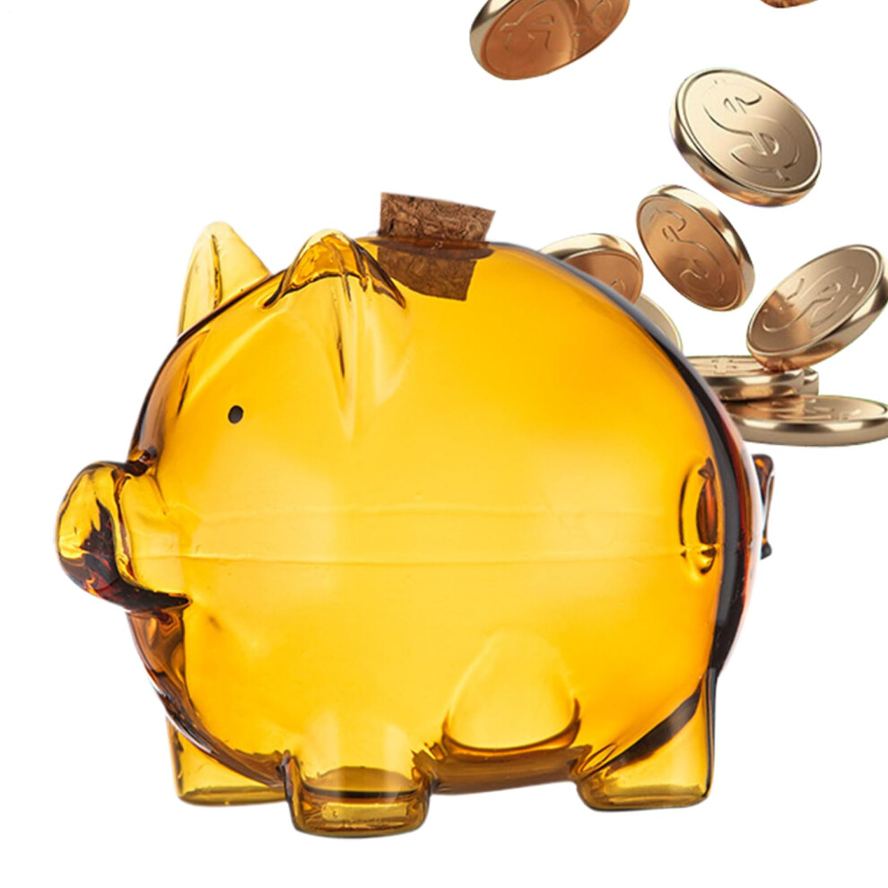 Glass Coin Bank - Clear Glass Pig Shaped Money Box for Saving, Decorative Display Stand, Desk and Bookcase Decoration