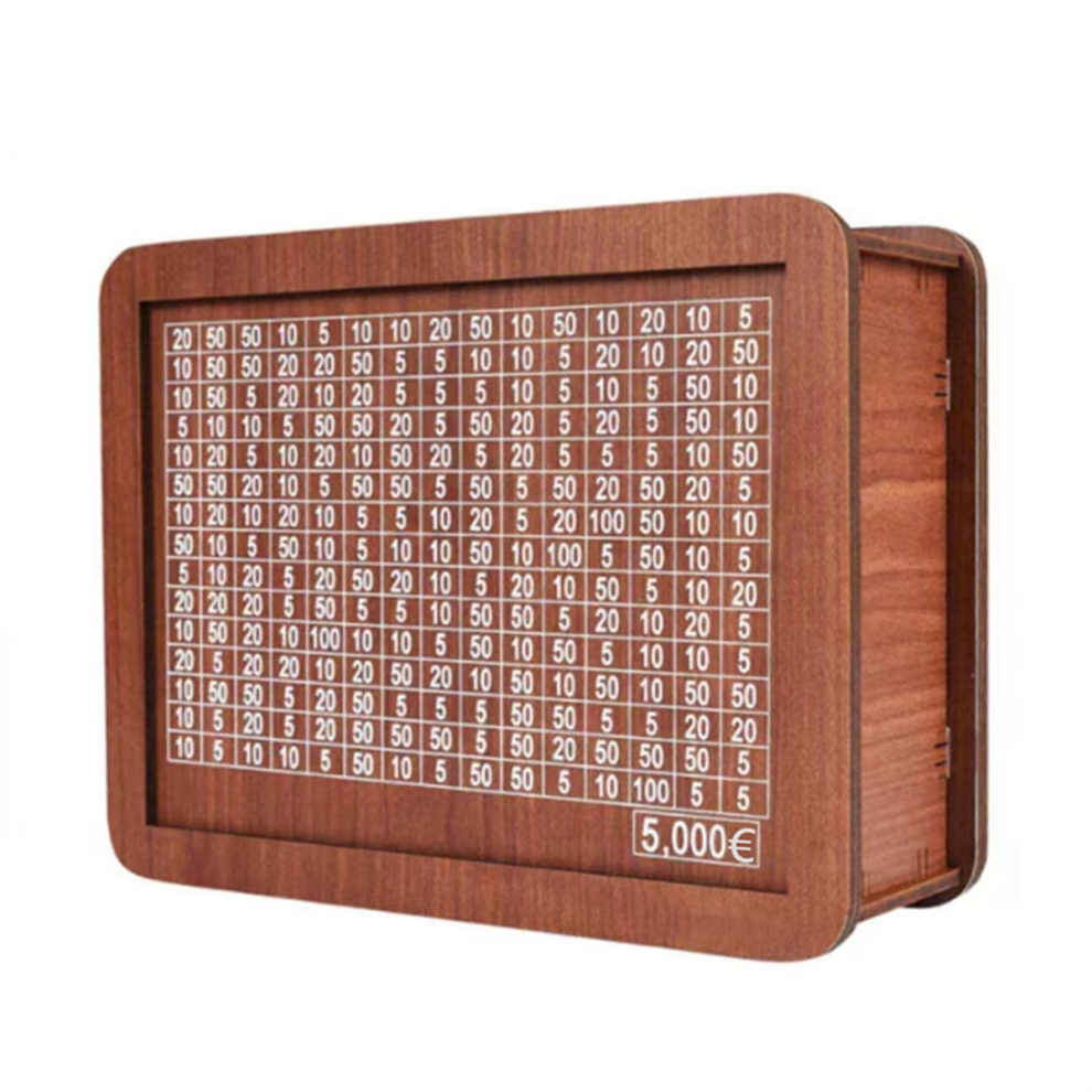 Home Counter Bank Wooden Piggy Bank for Adult Kids, Money Box with Counter, Money Saving Tin, Money Box with Counting Target 5000 Euros