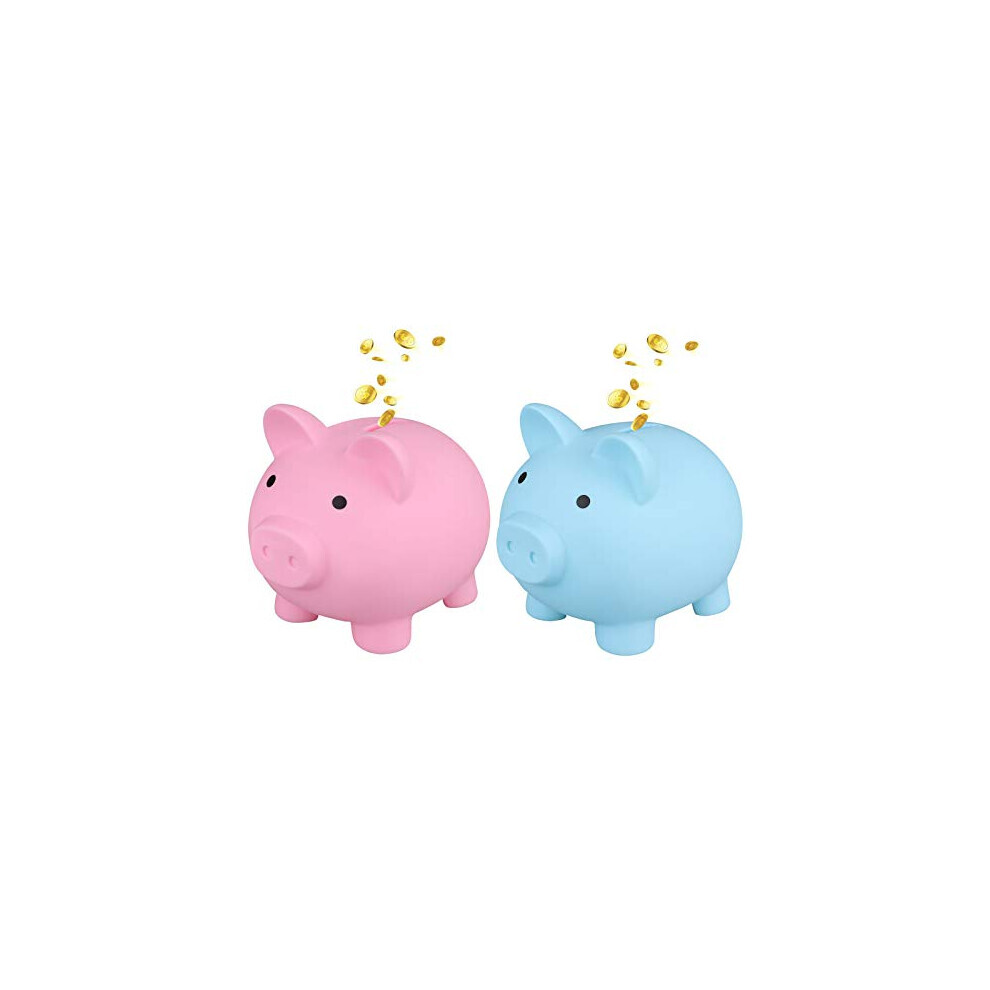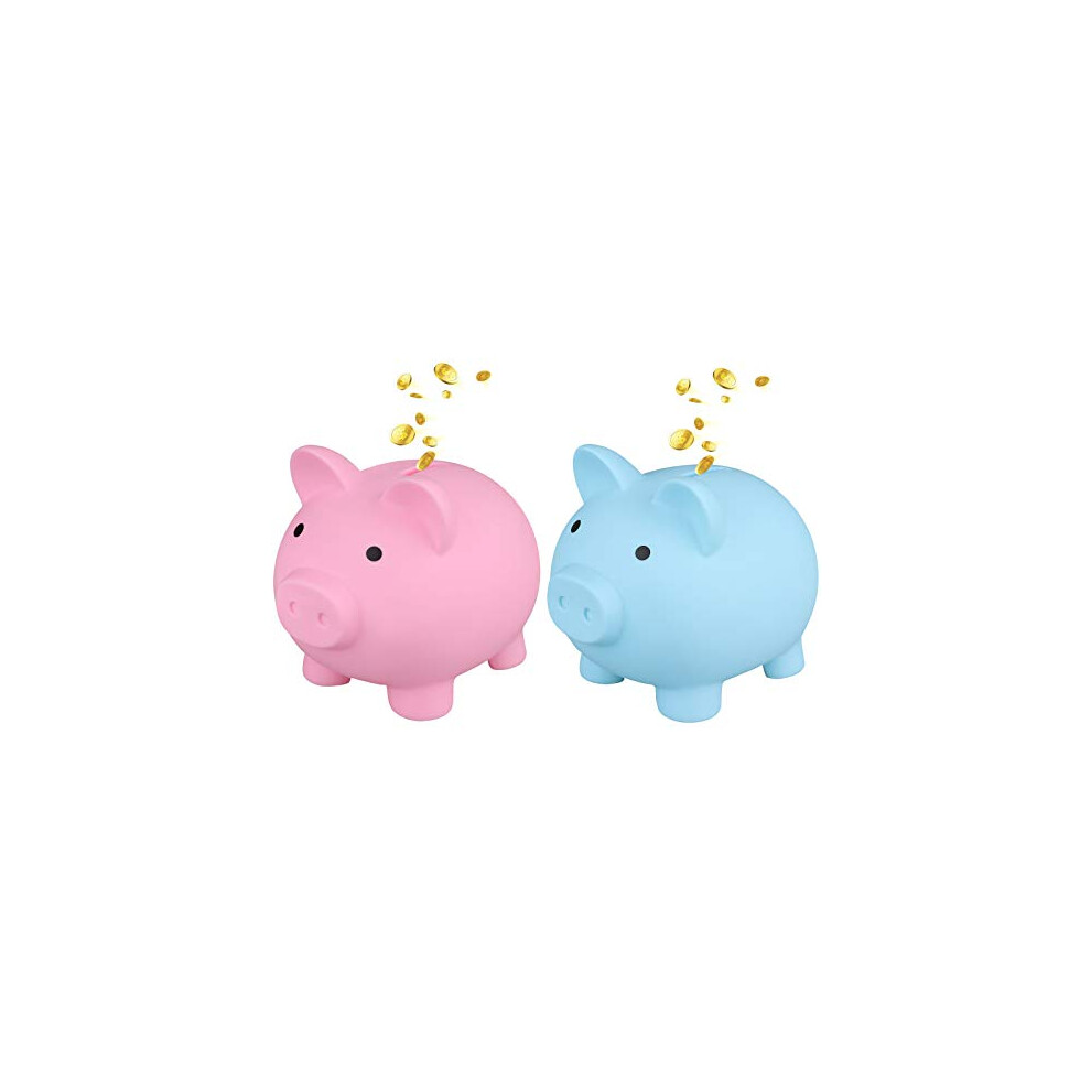 2Pcs Cute Piggy Bank Plastic Pig Money Bank Adults Piggy Bank Pig Money Box Coin Bank Plastic Saving Coin Box for Boys Girls Kids (Big) (Blue, Pink)