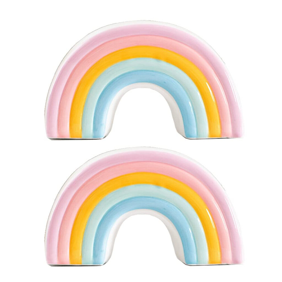 Piggy Bank Set 2pcs Rainbow Ceramic Coin Bank Colorful Money Box for Kids Saving