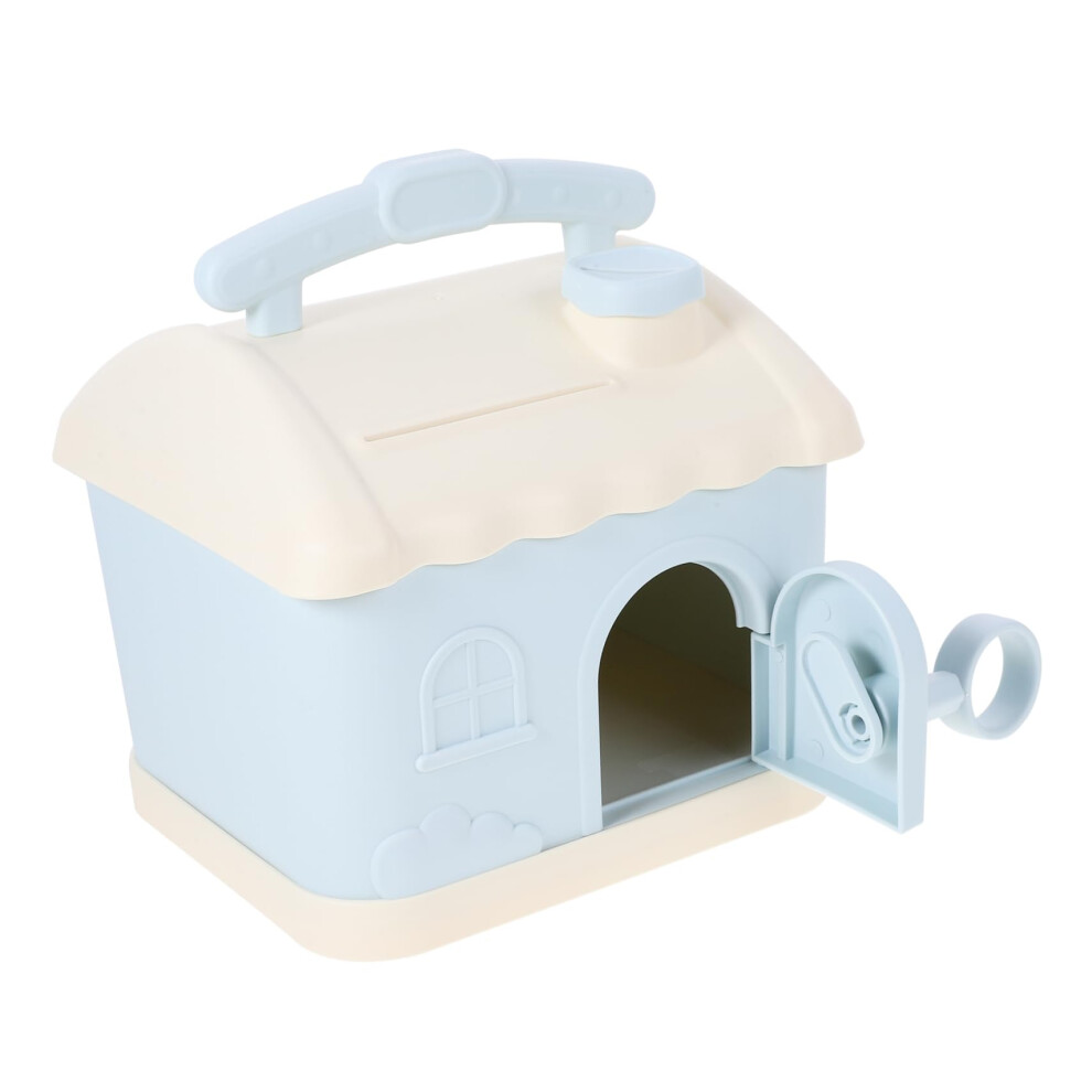 Cute Cartoon House Piggy Bank with Key, Secure Money Box for Kids Coin Saving, Compact Design