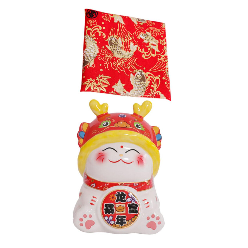 Ceramic Cat Piggy Bank Lucky Maneki Neko Money Box for Saving Coins Home and Office Decor