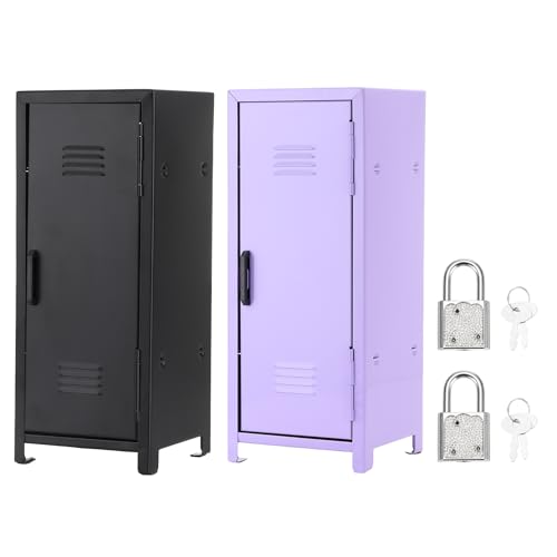 PATIKIL Mini Locker 4.3 x 10.8 Inch 2 Pcs Small Locker with Lock Keys, Real Little Desktop Metal Money Safe Storage Box Security Organizer Cabinet for Desk Bedroom Money Black/Light Purple