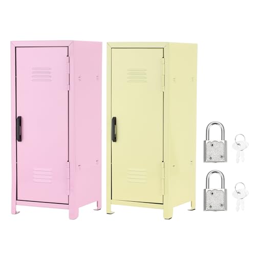 PATIKIL Mini Locker 4.3 x 10.8 Inch, 2 Pcs Small Locker with Lock Keys, Real Little Desktop Metal Money Safe Storage Box Security Organizer Cabinet for Desk Bedroom Money Light Pink/Yellow