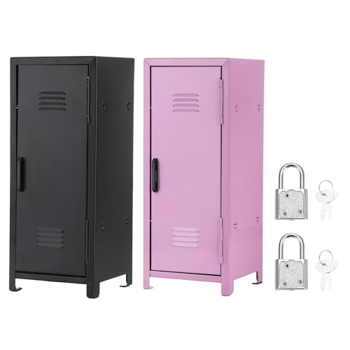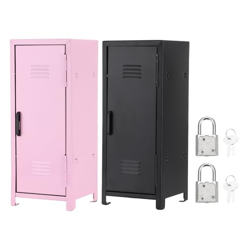 PATIKIL Mini Locker 4.3 x 10.8 Inch, 2 Pcs Small Locker with Lock Keys, Real Little Desktop Metal Money Safe Storage Box Security Organizer Cabinet for Desk Bedroom Money, Light Pink/Black