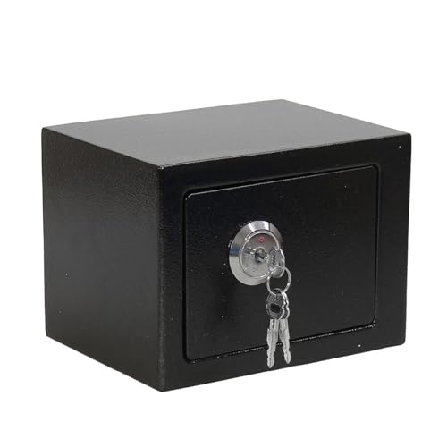 LLOOPK Arrival Professional and Durability Strong Iron Steel Key Operated Security Money Cash Safe Box For Home Office Jewelry Black