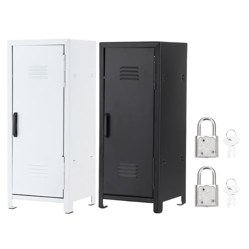 PATIKIL Mini Locker 4.3 x 10.8 Inch, 2 Pcs Small Locker with Lock Keys, Real Little Desktop Metal Money Safe Storage Box Security Organizer Cabinet for Desk Bedroom Money Coin, White/Black