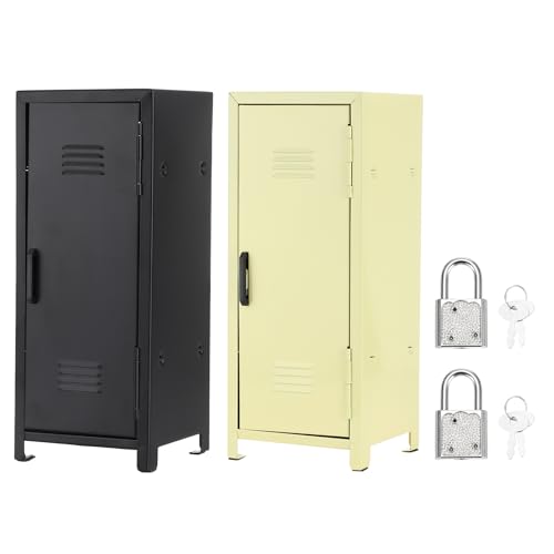 PATIKIL Mini Locker 4.3 x 10.8 Inch, 2 Pcs Small Locker with Lock Keys, Real Little Desktop Metal Money Safe Storage Box Security Organizer Cabinet for Desk Bedroom Money Coin Black/Yellow