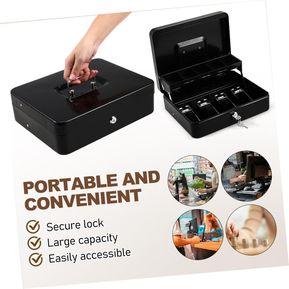 Portable Security Lockable Cash Box Tiered Tray Money Drawer Safe Storage Box 4