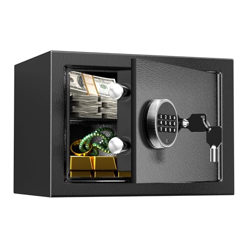 Safe Box, Electronic Safe Box with Keypad & Keys, Small Money safe Box for Home,Mini Safe for Kids, Electronic Security Money Safe for Cash,Lock Box with Code Keys,0.23 Cubic Feet Black