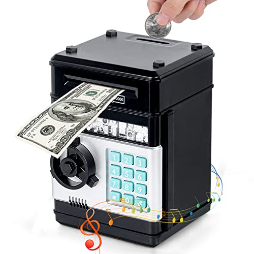 Thedttoy Digital Money Box Mini ATM Safe Money Bank for 3 4 5+ Years Old Kids, Cash Coins Saving Box Safe Money Box for Boys Girls, Perfect Piggy Bank Toy Gifts for Birthday Children's Day (Black)