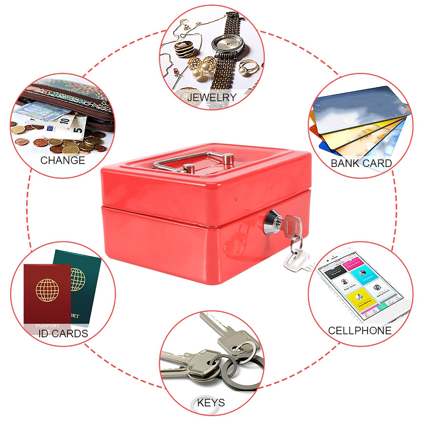 Red 1Pc Mini Portable Iron Petty Lockable Cash Money Coin Safe Security Box