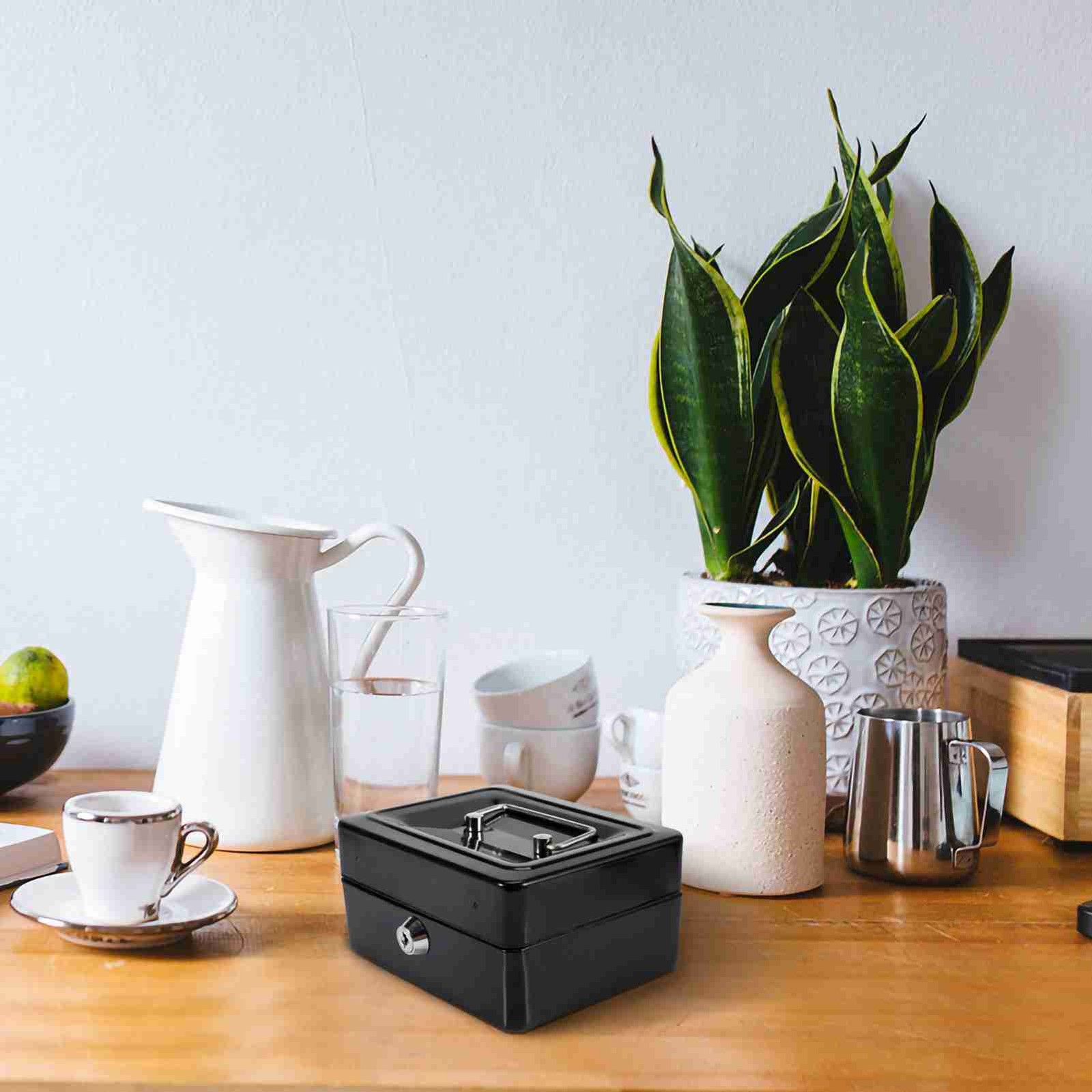 1Pc Mini Iron Petty Lockable Cash Money Coin Safe Security Box Household (Black)