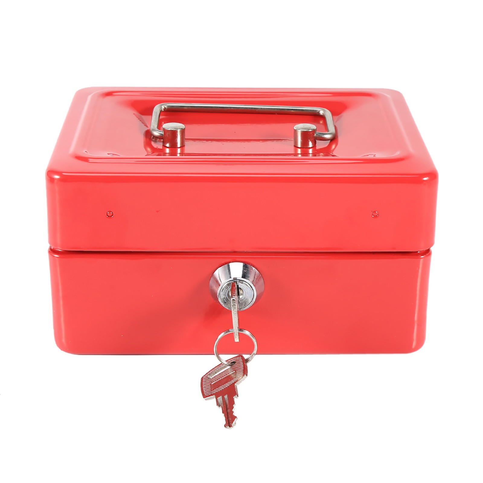 ㄧ1Pc Mini Iron Petty Lockable Cash Money Coin Safe Security Box Household Red