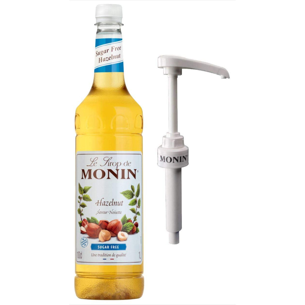 MONIN Premium Hazelnut Sugar Free Syrup 1 L & 10 ml pump for 1 L PET and 25 cl MONIN Premium Syrup bottles