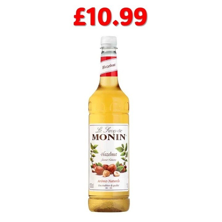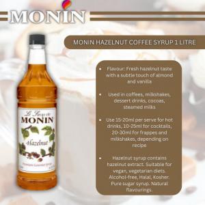 Monin Hazelnut Syrup 1L for Coffee, Milkshakes & Desserts