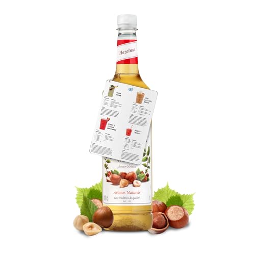 MONIN Premium Hazelnut Nut Free Syrup 1L for Coffee and Cocktails. Vegan-Friendly, Allergen-Free, 100% Natural Flavours and Colourings
