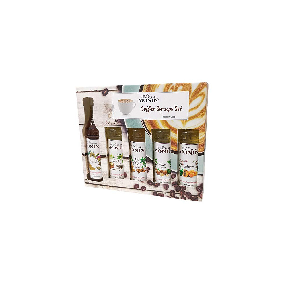 MONIN Coffee Syrup Gift Set 5x5cl. 1x Vanilla, 1x Caramel, 1x Hazelnut, 1x Amaretto, 1x Gingerbread Syrup for Coffee. Perfect for Flavoured Coffees,