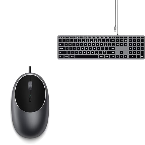 Satechi Aluminium C1 Wired USB C Mouse and Slim W1 Wired Backlit Keyboard (US QWERTY Layout with No £ Sign) Bundle