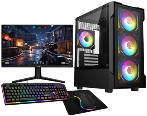 ASC Ryzen Gaming PC Bundle, AMD Ryzen 5 4500, RTX 3050 6GB Graphics, 16GB RAM, 256GB SSD + 1TB HDD, 500W 80+ PSU, WiFi, Windows 11, Black 6 Fan RGB Case, 22" Monitor, Gaming Keyboard & Mouse