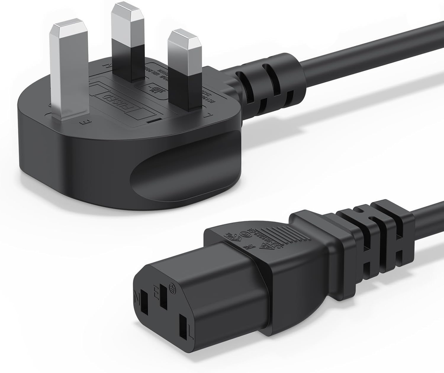 UK Computer Power Cable, 18AWG, BS 1363 to C13, 13A 250V, Black Replacement AC Power Cord, Kettle Lead/UK Power Cord, Power Supply Cable, TV/Monitor Power Cable (2m)