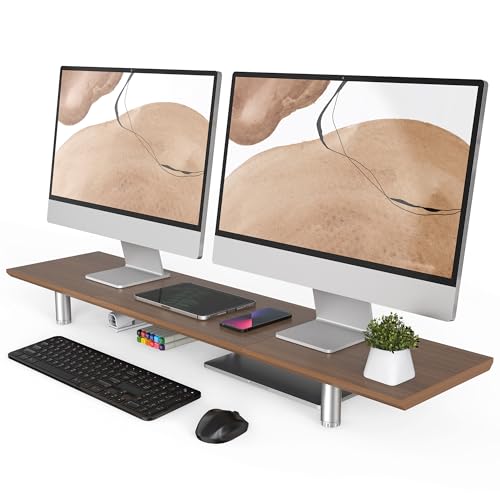 Fenge Monitor Stand Riser for 2 Monitors 108cm Large Compute Monitor Stands with Phone/Tablet Holder Slot,Desk Organizer Max Load 50KG (Brown)