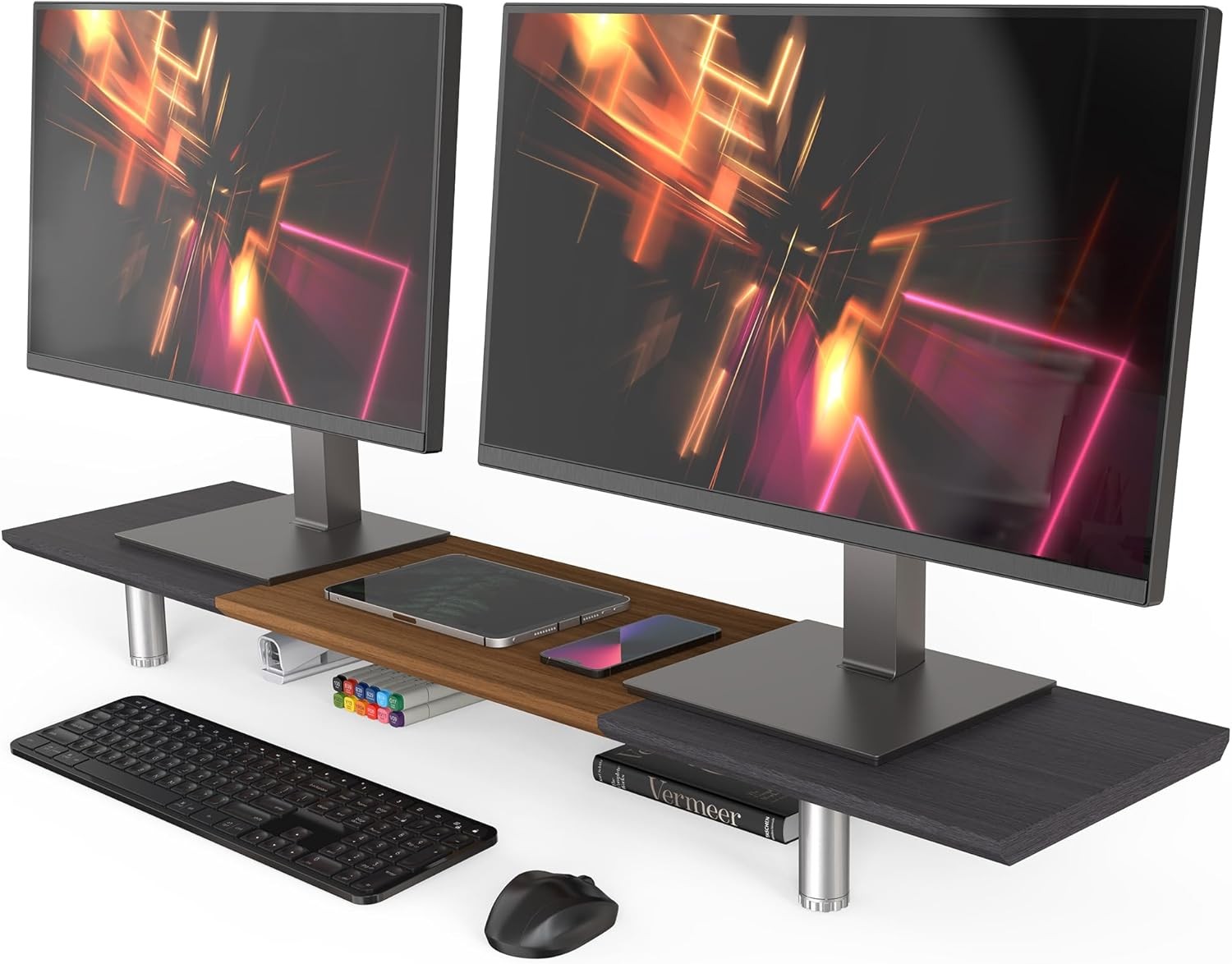 Fenge Monitor Stand Riser for 2 Monitors 108cm Large Compute Monitor Stands with Phone/Tablet Holder Slot,Desk Organizer Max Load 50KG (Oak)