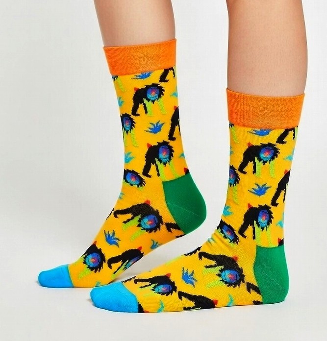 HAPPY SOCKS | Womens Ladies Yellow Monkey Novelty Fun | Size UK 4-7 EU 36-40