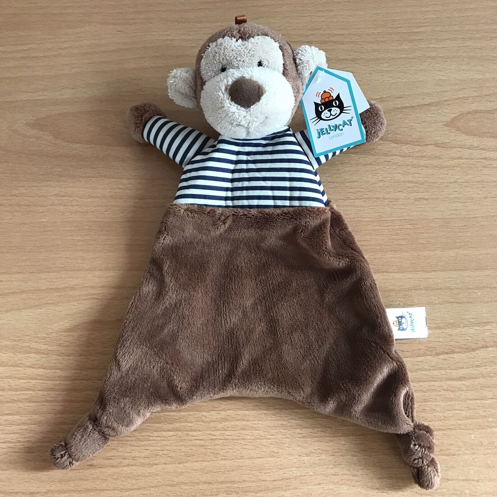 Jellycat - Stripey Monkey Soother - Soft Brown Chimp Comforter Blanket - New