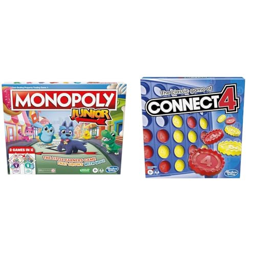 Monopoly Junior Board Game, 2-Sided Gameboard, 2 Games in 1, Monopoly Game for Younger Children & The Classic Game of Connect 4 Strategy Board Game; 2 Games for Kids Aged 6 and up; 4 in a Row