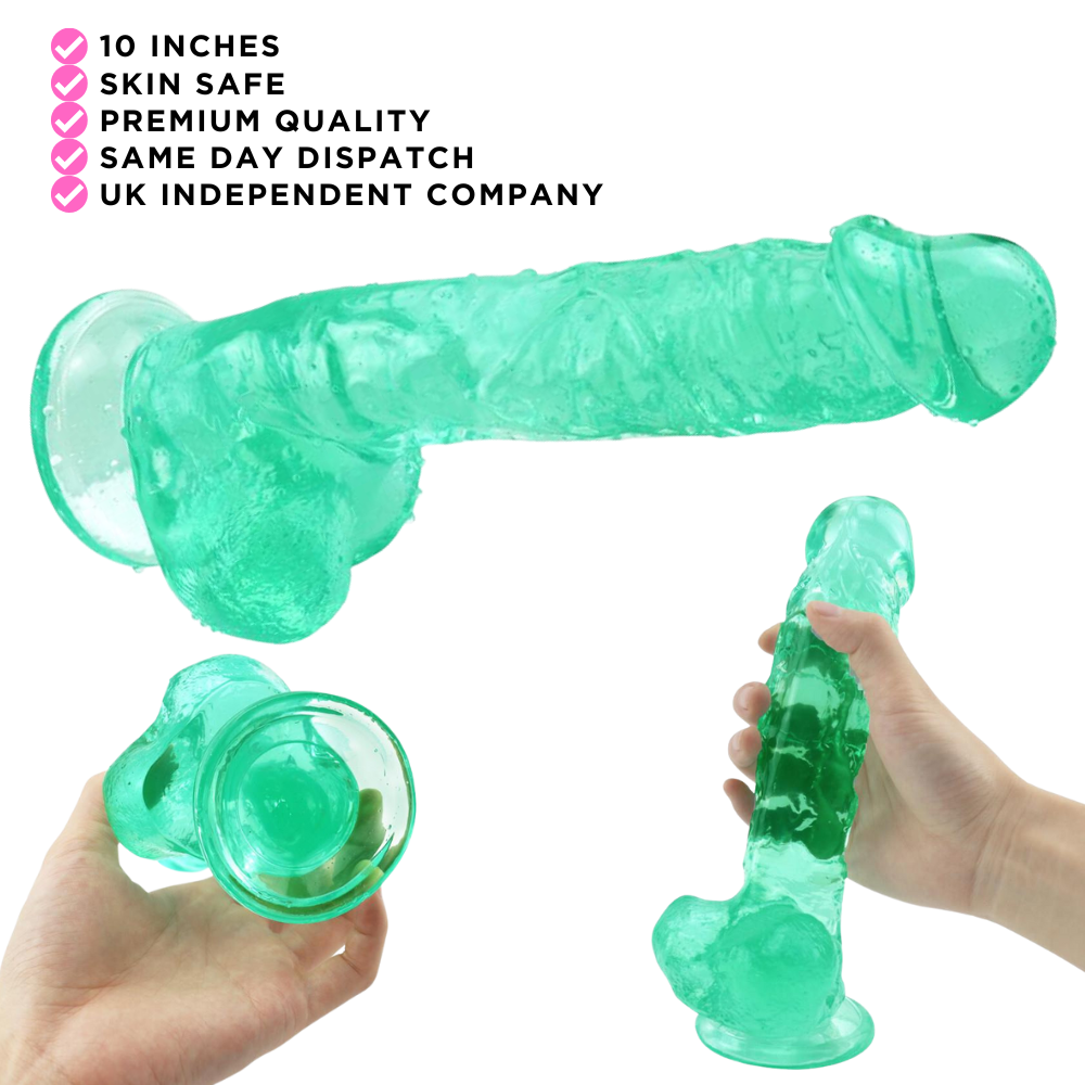 Big Thick Dildo Sex Toy For Couples Green Monster 10 Inch Strap On Skin Safe