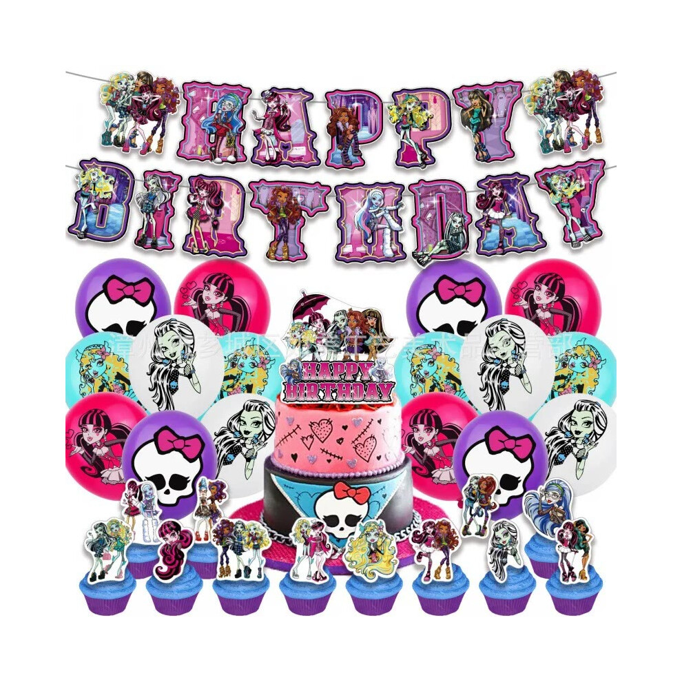 31Pcs/Set Monster High Birthday Party Banner Balloons Backdrop Cake Topper Decor