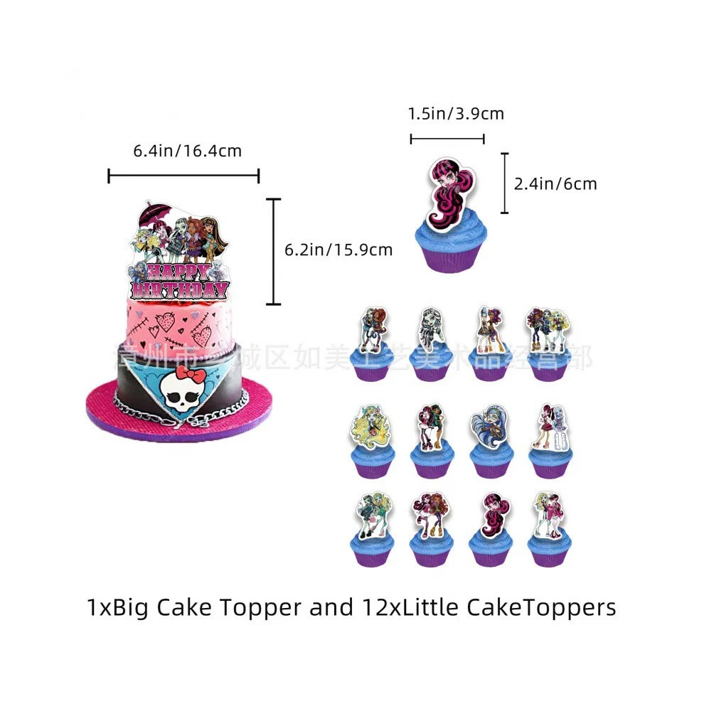 (13pcs cake topper, Monster Doll) Monster Doll Spirit High School Birthday Party Decoration Balloon Banner Cake Topper Backdrop Kids Baby Shower Party