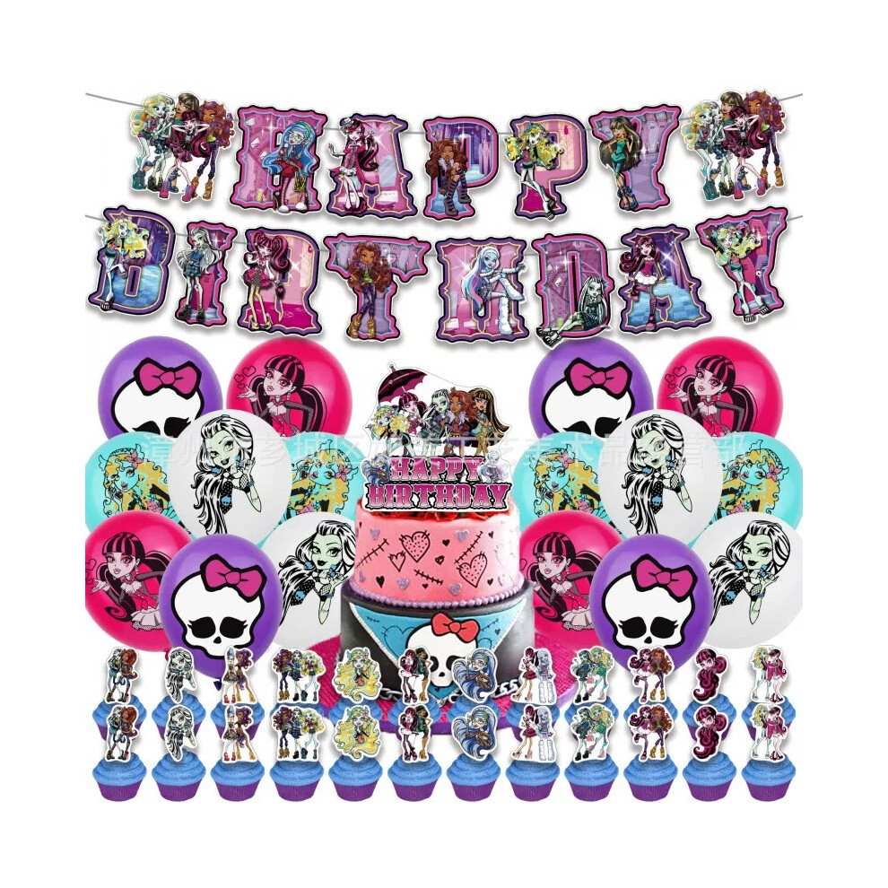44pcs Banner Cake Topper Balloons Decorations Set For Monster High Themed Party