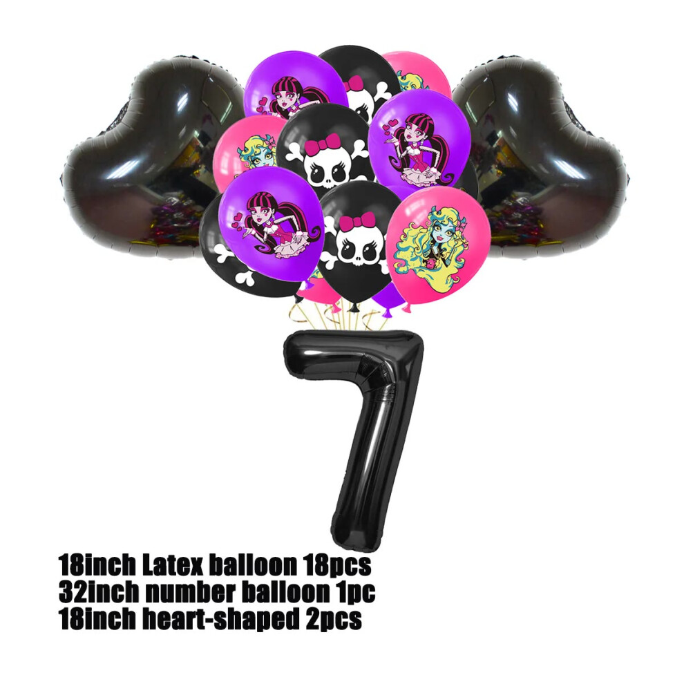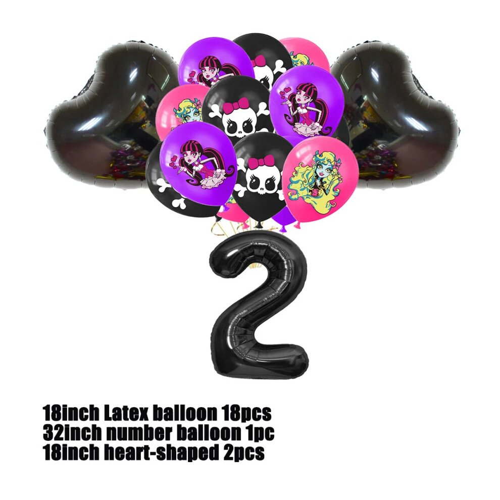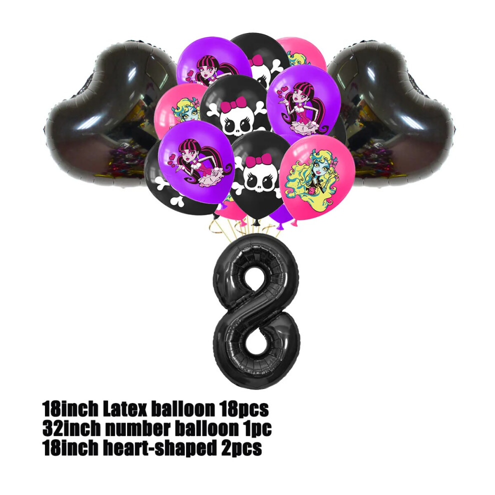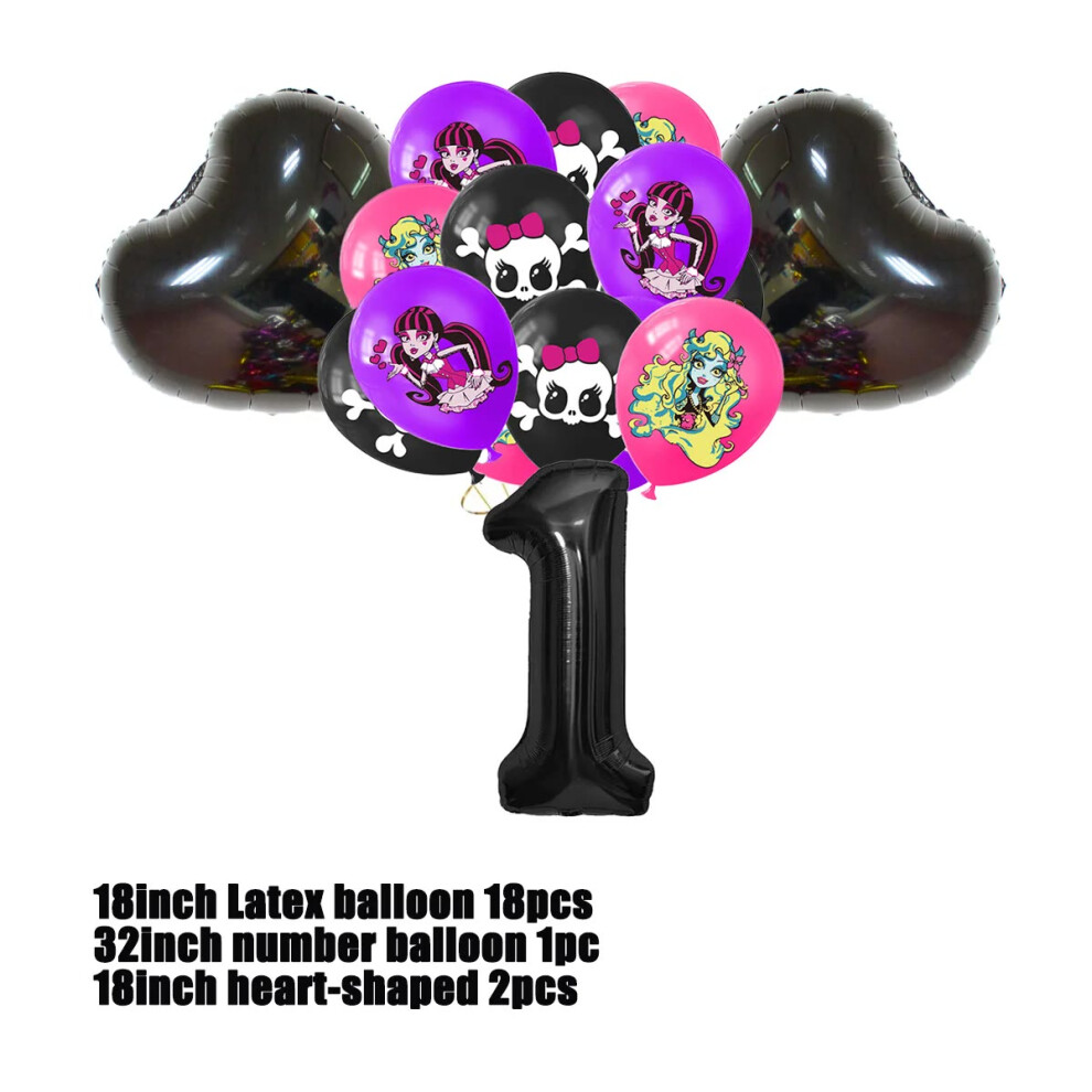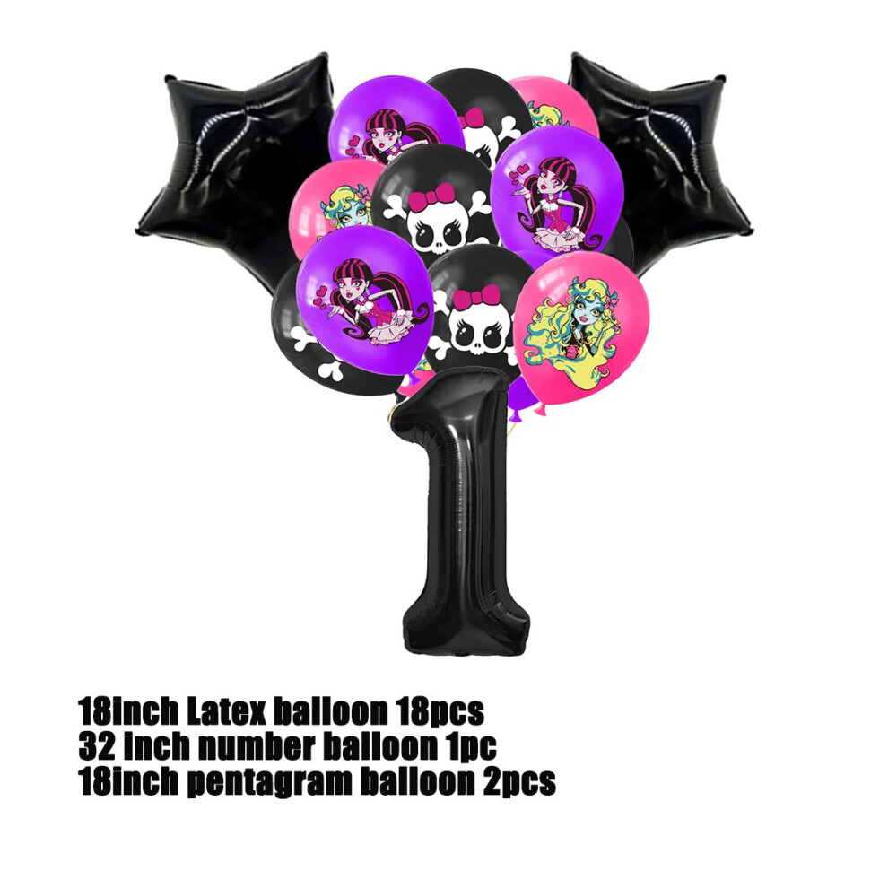 30Pcs Banner Cake Topper Balloons Set For Monster High Party Themed Decorations