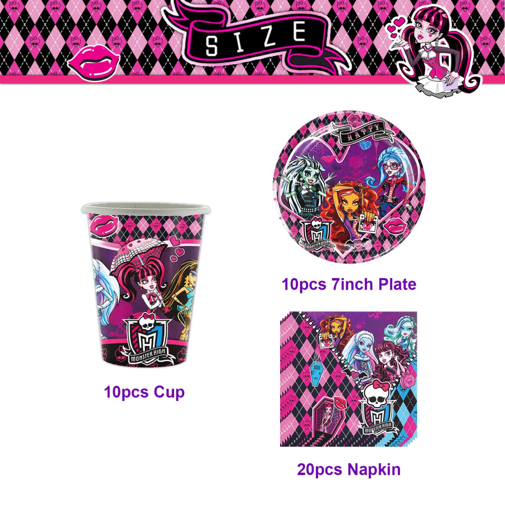 (10pcs cup) Monster Doll Spirit High School Birthday Party Supplies Balloon Tablecloth Disposable Tableware Set Kids Baby Shower Party Deco