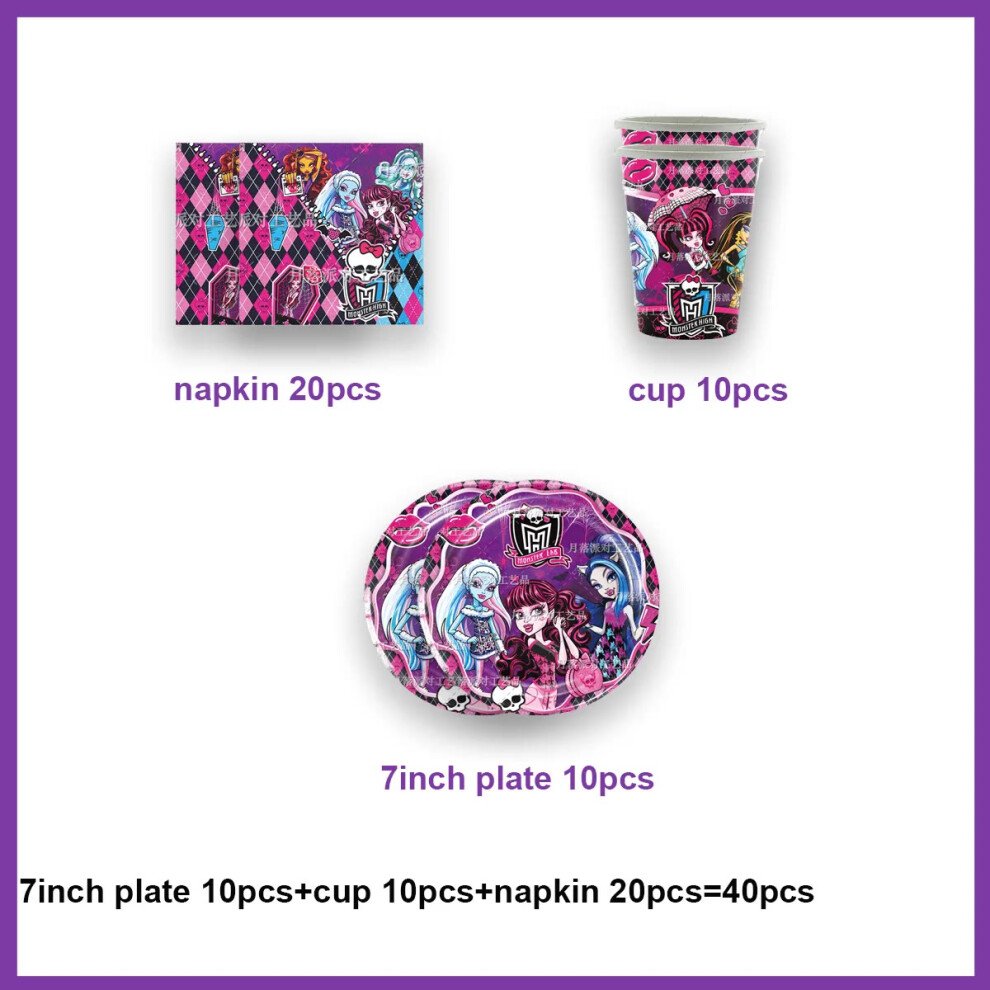 (7inch 40pcs, Other) Cartoon Monster Spirit High School Theme Birthday Party Disposable Tableware Doll Balloons Plates Cup Child 1st Birthday Gifts
