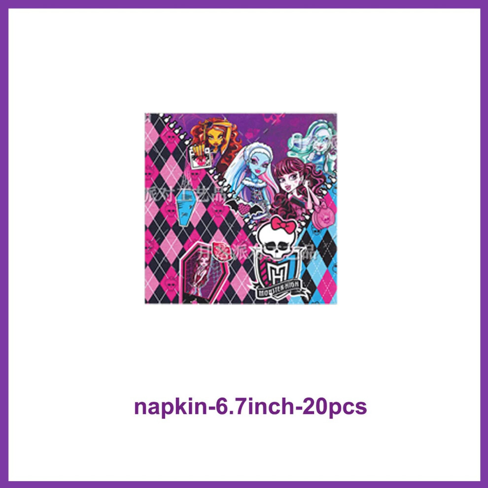 (20pcs napkin) Monster Doll Spirit High School Birthday Party Supplies Balloon Tablecloth Disposable Tableware Set Kids Baby Shower Party Deco