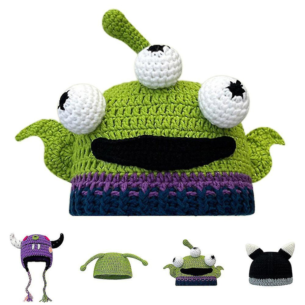 (Antenna) Balaclava Monster Shrek Knitted Beanie Hat Party Halloween Funny Caps For Men Women High Quality