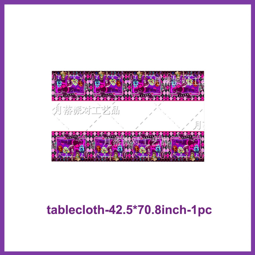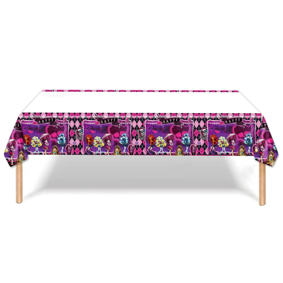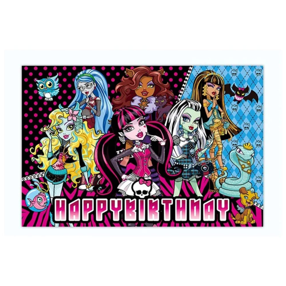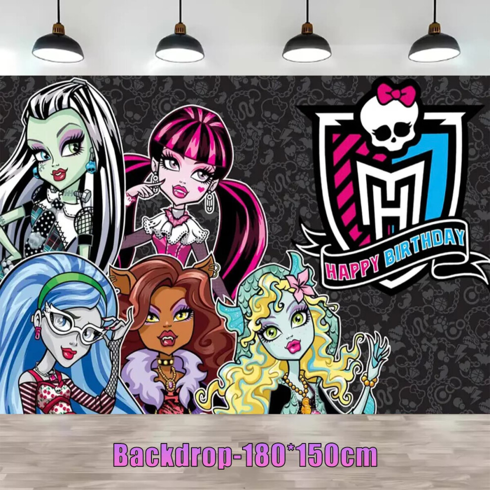(backdrop 1pcs) Monster Doll Spirit High School Birthday Party Supplies Balloon Tablecloth Disposable Tableware Set Kids Baby Shower Party Deco