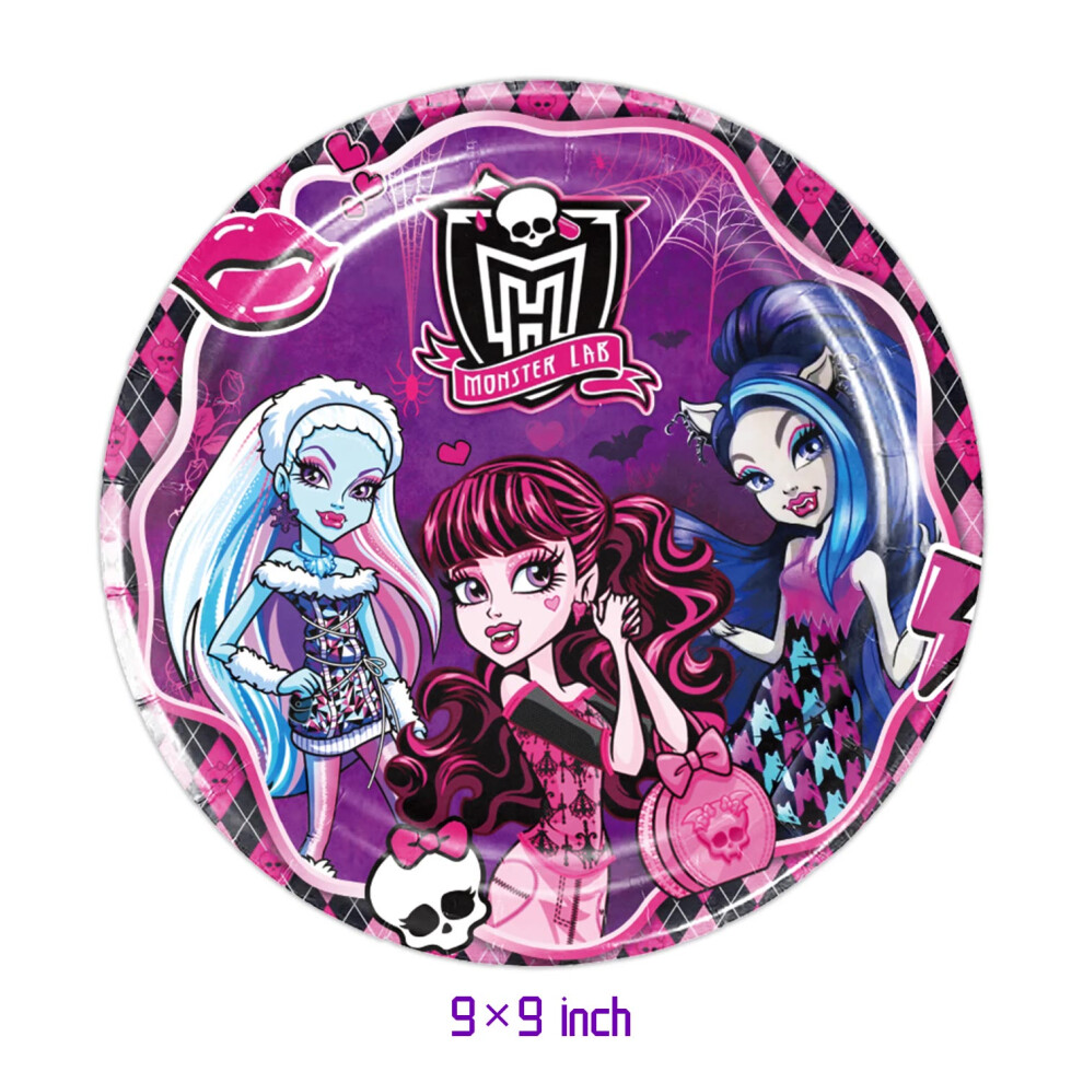 (10pcs 9inch plate) Monster Doll Spirit High School Birthday Party Supplies Balloon Tablecloth Disposable Tableware Set Kids Baby Shower Party Deco